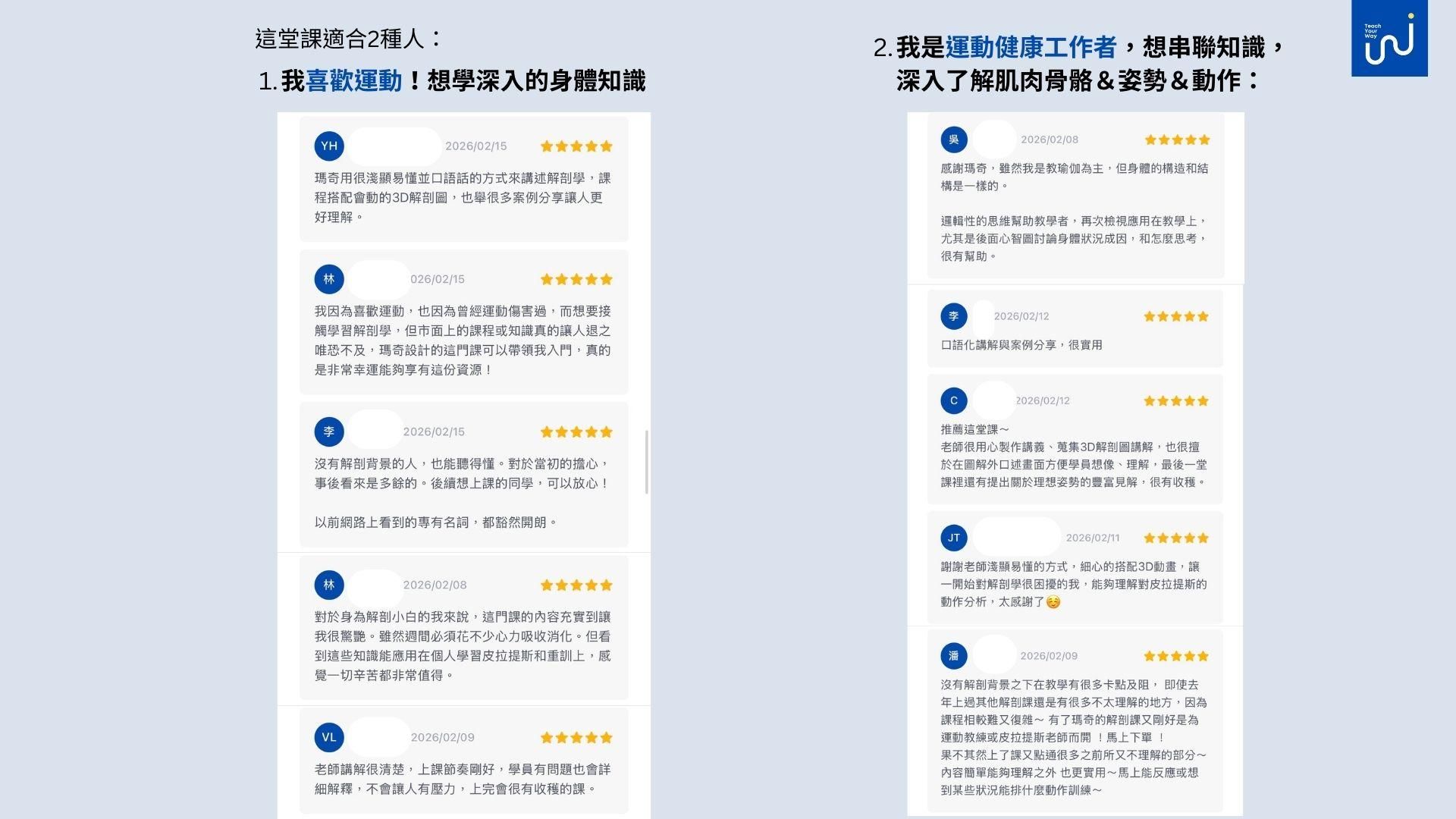 - 喜歡運動,想深入學習身體動作知識,提升運動效果的人