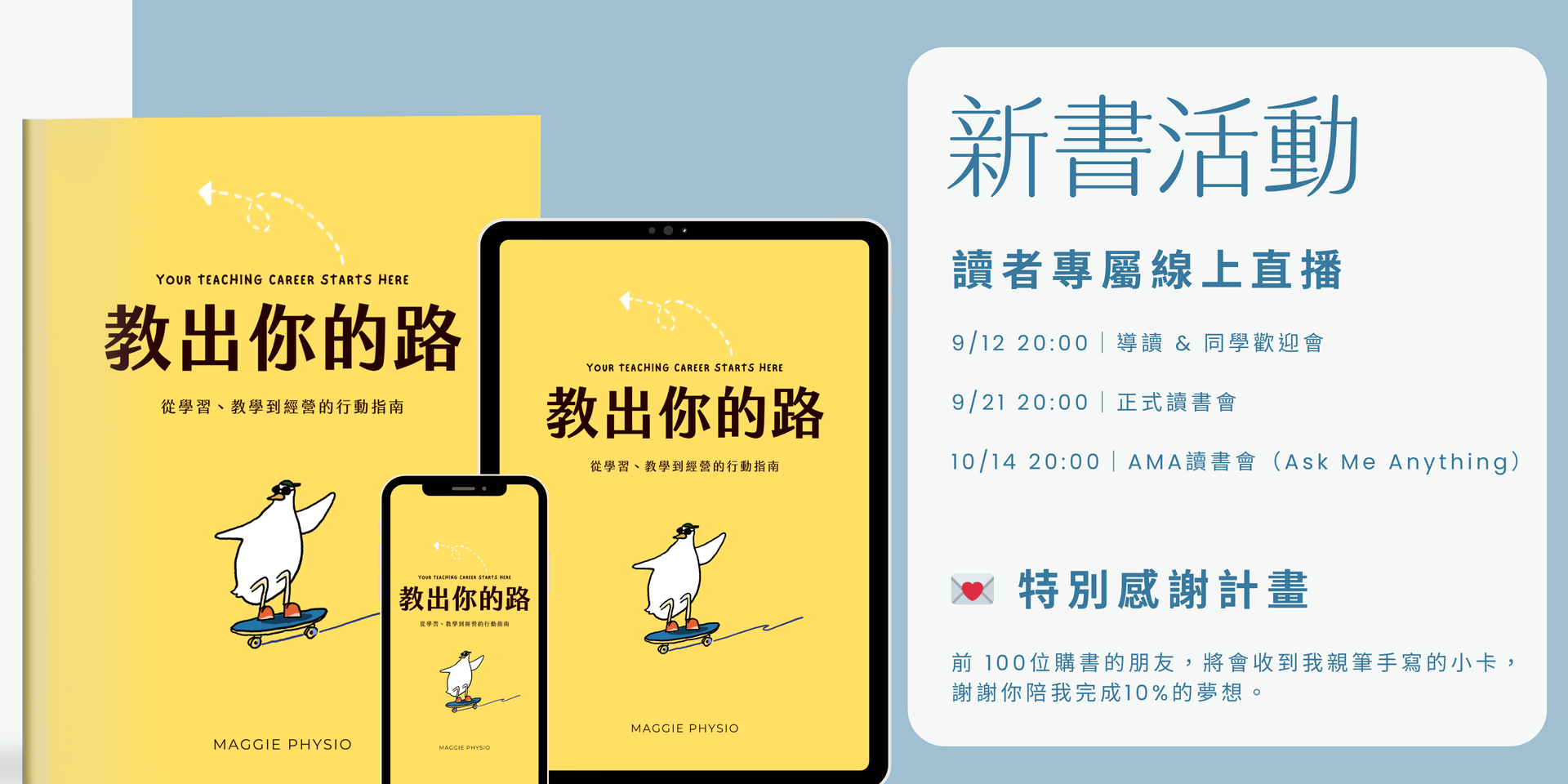 📍電子書、讀書會直播連結、回放影片與補充資源,都會放在Teachyourway 官網,登入即可下載收看。